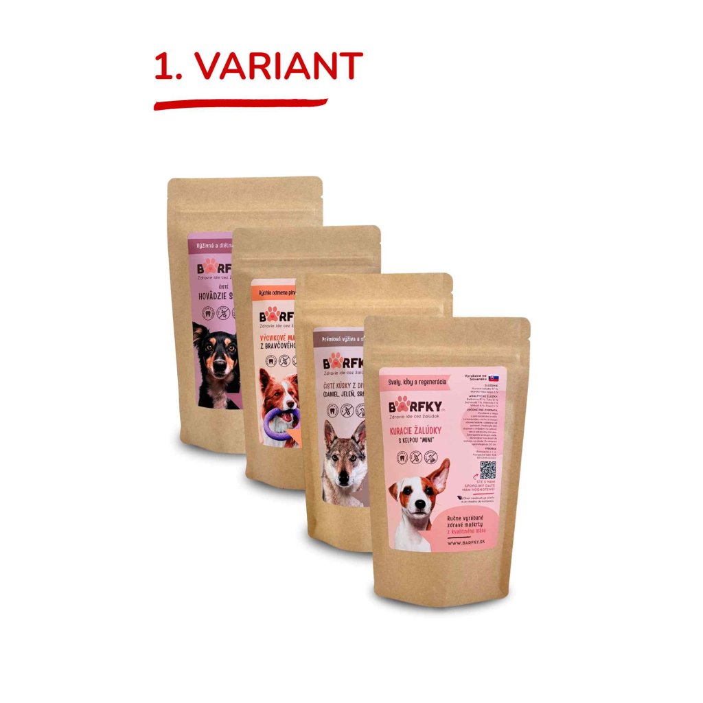Práve pre takéto príležitosti sme pripravili výber vašich najobľúbenejších maškŕt, ktoré obdarovaný majiteľ psíka môže využiť nielen pri bežnom venčení či výcviku, ale aj počas spoločných chvíľ vianočnej pohody a bezstarostného mlsania. Darčekový balíček ponúkame v 4 variantoch.